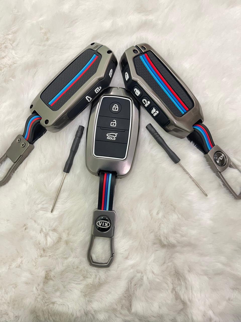 Upgrade your SUV key with the Kia Sportage Premium Metal Key Case. Made from durable zinc alloy metal, this cover provides 360° protection against scratches, drops, and everyday wear while giving your smart key a sleek metallic luxury finish. Designed for a perfect fit, it offers the perfect blend of strength, elegance, and comfort.